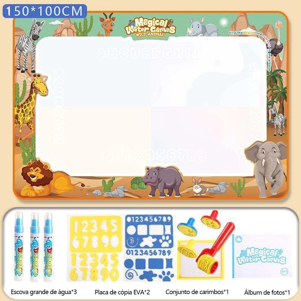 O Tapete de Desenho de Água Grande 100x150cm é a escolha perfeita para estimular a imaginação das crianças sem bagunça. Basta adicionar água às 3 canetas mágicas para que os desenhos apareçam como mágica sobre o tapete — e desapareçam ao secar, permitindo brincar de novo e de novo. Ideal para desenhar, escrever e criar com liberdade, longe de tintas e manchas.
